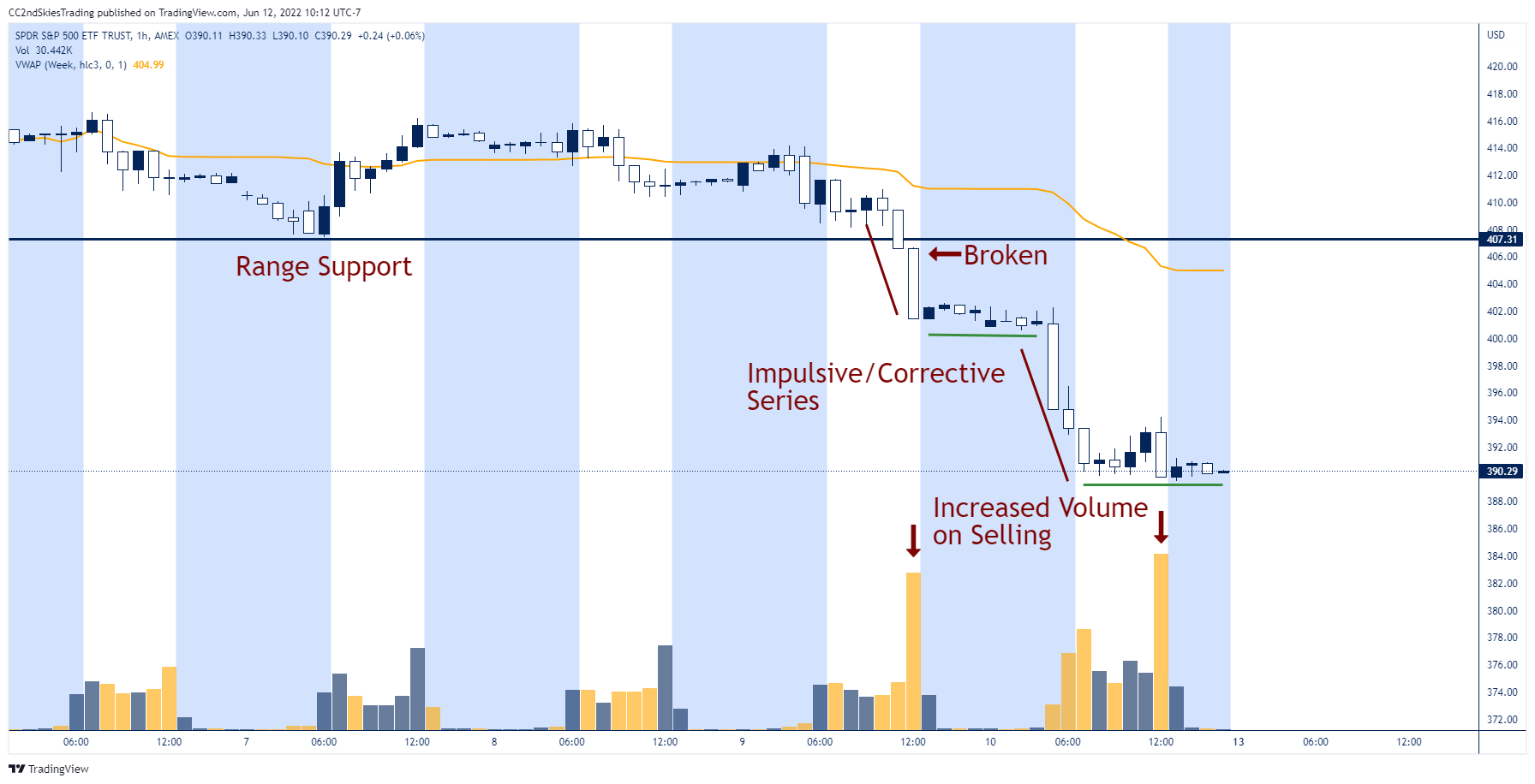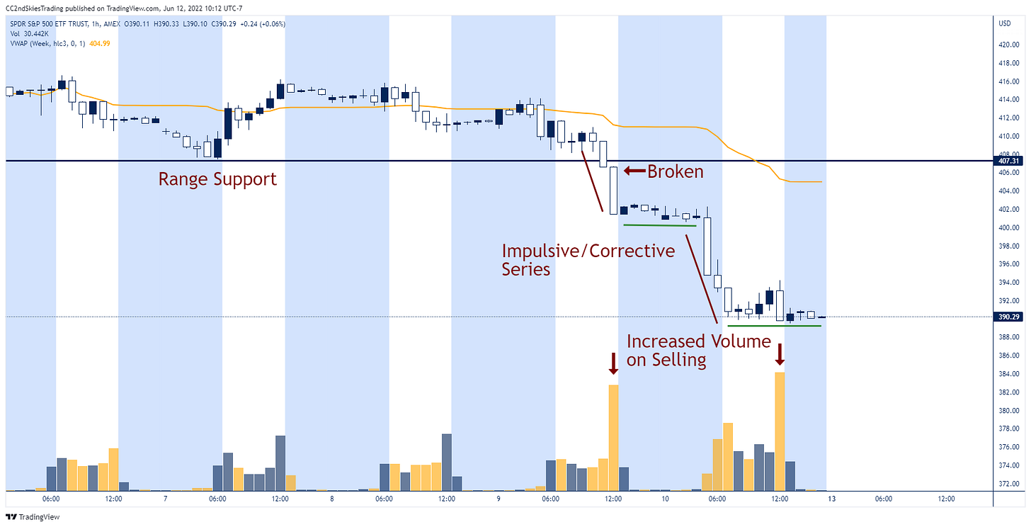 The clear impulsive and corrective series is on display in the chart, along with the volume spikes on the selling, suggesting this ‘risk off’ event was aided by real money macro players selling.